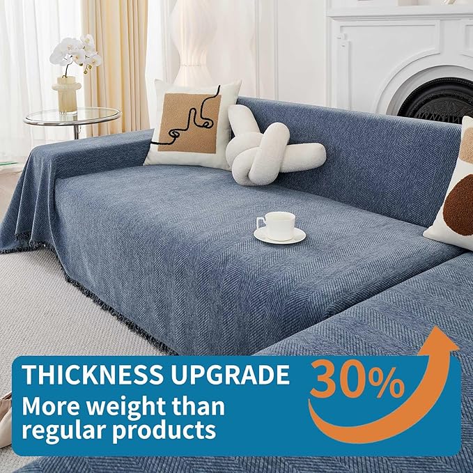 - UNIQUE ANTI-SLIP: Unlike other ordinary couch cover Blanket, our non-slip sofa cover has added anti-slip particles on the reverse side, which can ensure that oversized couch cover won't slide, even when someone sits on the sofa, it won't move around or generate displacement, when sofa protector is finished laying, you don't need to adjust couch protector frequently, it's a very labor-saving.