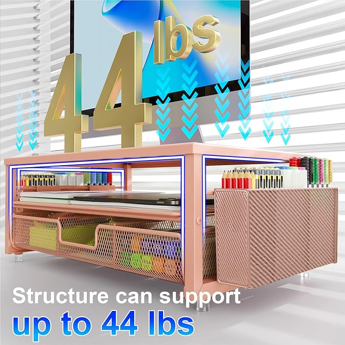 - 【Unique Desk Decor】: The monitor stand has a classic rose gold coating, adding elegance and modernity to your office while being sturdy and practical. allowing you to work in a cozy and tidy environment with greater comfort and efficiency.
