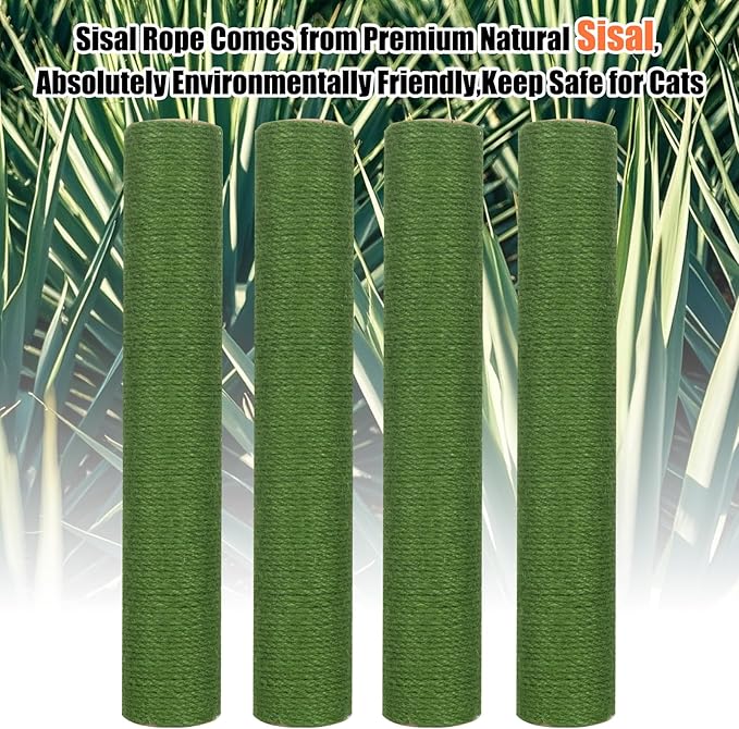 PowerKing Natural Sisal Replacement Scratching Post, 4 Pieces M8 Cat Scratch Post Refill Pole Parts for Refurbishment, White, Include Screws (Green-15.7''+15.7''+7.87''+7.87'')