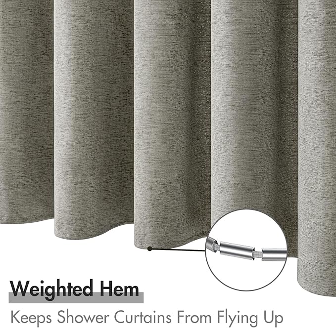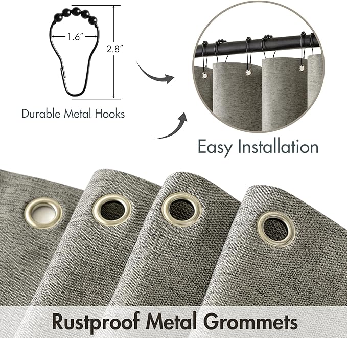 - Package Includes - Comes with 1 faux linen shower curtain featuring reinforced metal holes and 12 bonus metal hooks, rust resistant and easy to slide. You will enjoy the added convenience of these bonus hooks while saving on the cost and effort.