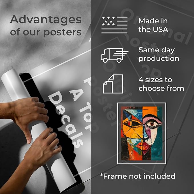 - Effortless elegance. Enjoy easy installation with this art posters frameless design. Hanging it securely on the wall is easy - using hooks, nails or adhesive strips - and you can easily show off your unique style and taste.