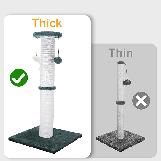 Cat Scratching Post 34 Inches Heavy Duty and Thicker Cat Scratching Post Sisal Rope with Hanging Ball and Mice Scratching Post for Indoor Cats and Adult(Green)