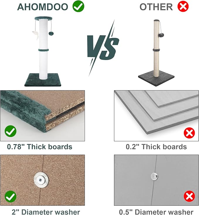 - Extra-Tall Design: Large scratching post often feature an extra-tall design, providing cats with an extended vertical surface to stretch and fully engage their muscles. 34inch height allows cats to indulge in their natural climbing instincts and provides them with a secure and satisfying scratching experience.