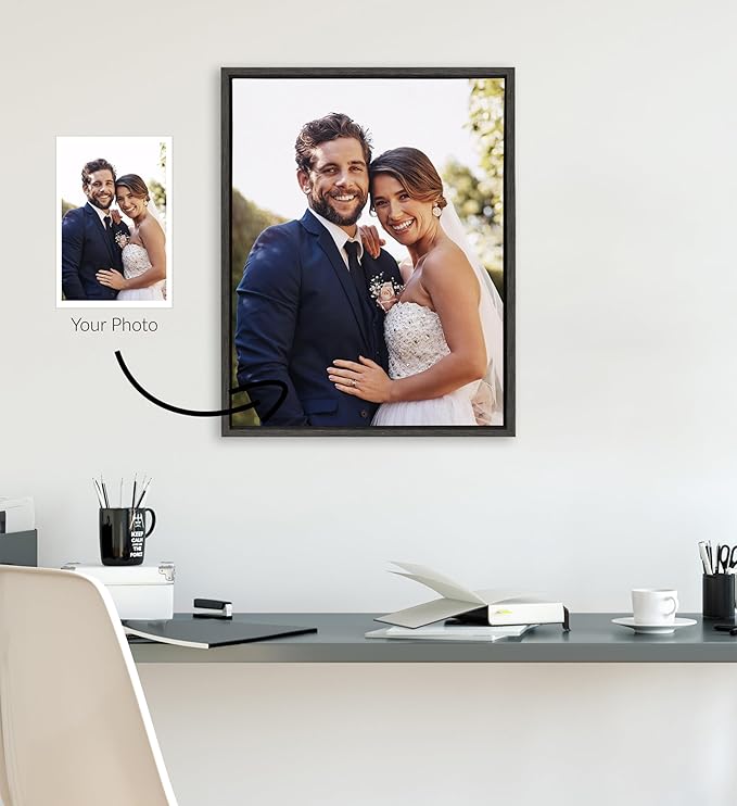 Kate and Laurel Custom Printed Framed Canvas Wall Art, 16x20 Dark Gray, Sylvie Personal Canvas Print with Your Photos for Bedroom or Living Room Gallery Wall Decor | Printed and Hand Framed in the USA