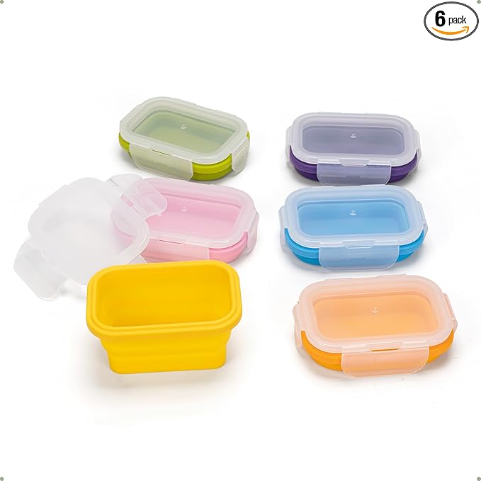 - Material : Silicone Containers, Plastic Lids