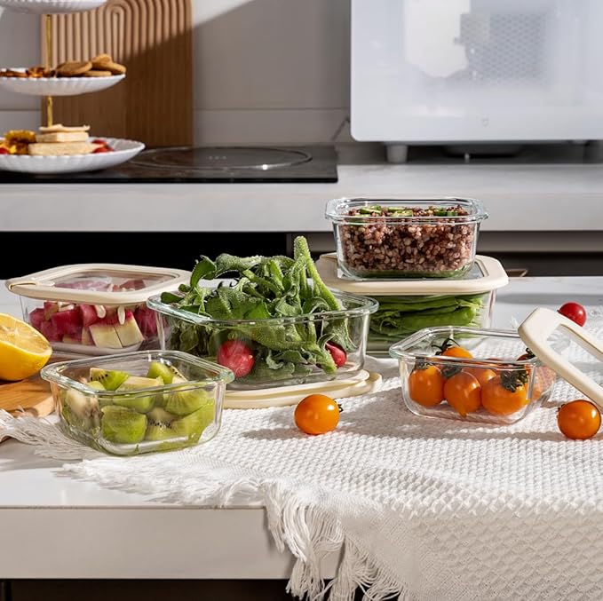 - ✅WHAT’S IN THE BOX: Each set comes with the Glass containers and their matching Silicone Framed Glass Lids. Square Shape in 6 Pack Convenient Size : 27oz, 17oz, 10oz, Easy Cleaning, both Glass Containers and Lids are Dishwasher Safe.