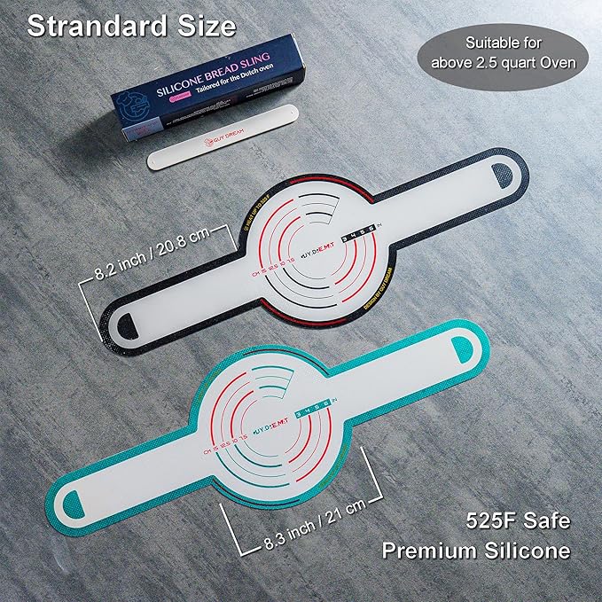 - **Withstands Extreme Heat up to 525°F** Our silicone bread sling is designed to excel in high-temperature baking environments, handling heat up to 525°F (273°C) without warping, melting, or losing performance. Whether you’re baking artisan bread, sourdough, or pizza in a Dutch oven, this sling guarantees consistent, reliable results. Perfect for the demands of professional bakers and passionate home cooks alike.