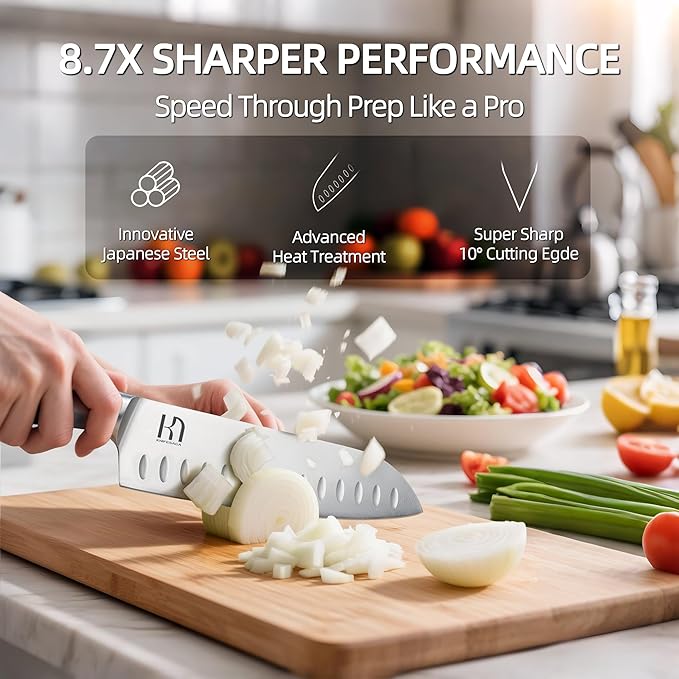 - 【Revolutionary NextGen Forged Steel】Indulge in the artistry of KnifeSaga's kitchen knife, showcasing an innovative steel formulation. With meticulous craftsmanship, we have achieved an exceptional 10° blade edge, ensuring effortless and precise cutting, transforming each slice into a seamless experience.