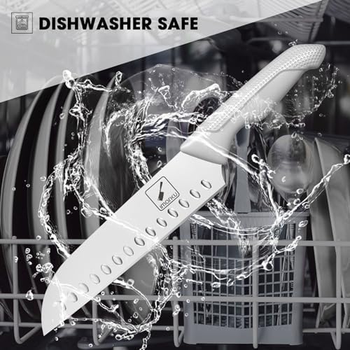 imarku® 14-Piece Kitchen Knife Set with Block and Sharpener, Professional Stainless Steel with Non-Slip Ergonomic Handle, Dishwasher Safe, Home Essential, Gray-White