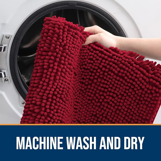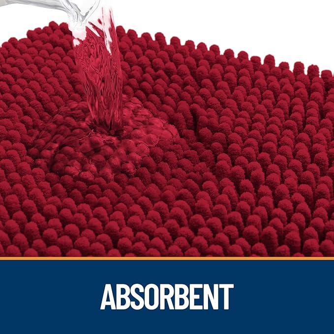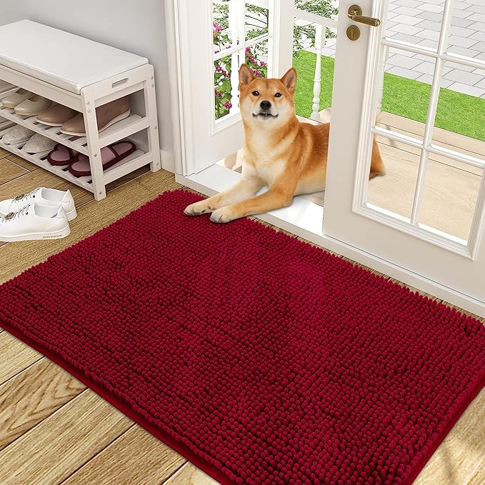 OLANLY Dog Door Mat for Muddy Paws 48x30, Absorbs Moisture and Dirt, Absorbent Non-Slip Washable Doormat, Quick Dry Chenille Mud Mat for Dogs, Entry Indoor Entryway Carpet for Inside Floor, Red