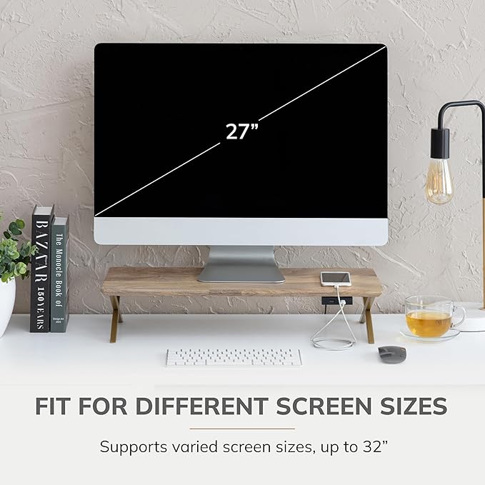 - Ergonomic Computer Riser: Prioritize comfort with this thoughtfully designed computer riser. As one of the best computer risers for desk monitors, the monitor stand wood construction offers an ideal viewing angle for maximum productivity.