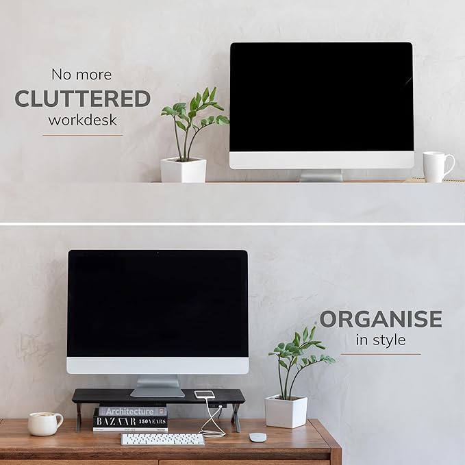 - Elegant Desk Shelf: Enhance your workspace with this sophisticated desk shelf, designed as a desk riser to elevate your monitor. The monitor stand riser ensures ergonomic comfort while adding a refined touch to any office.