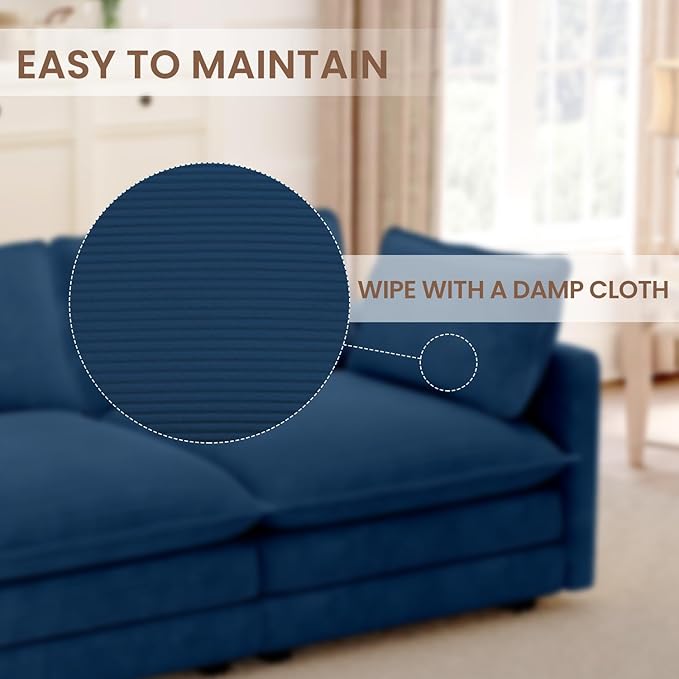 - Premium Corduroy Fabric: The corduroy fabric used to make this sofa has a simple striped design that will enhance your taste. This cozy and warm touch ensures that this sofa will last for a long time. This is an even better choice if you have pets at home, you can allow your pets stay on it. Even if your sofa gets dirty, all you need is a damp cloth to gently wipe it down