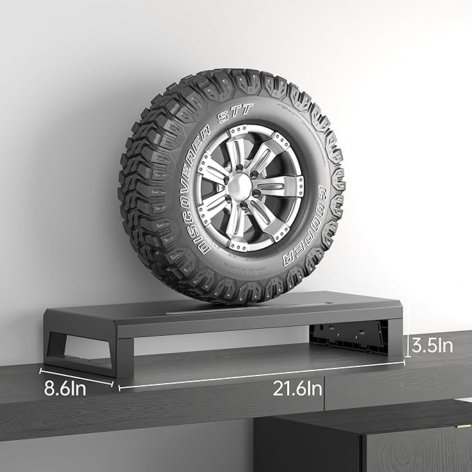 - 【Sturdy and Stable】The monitor riser is made of a 21.65*8.66 inch metal plate and ABS premium desk leg modules, with a maximum weight capacity of 110 lbs, providing stable support for various items.