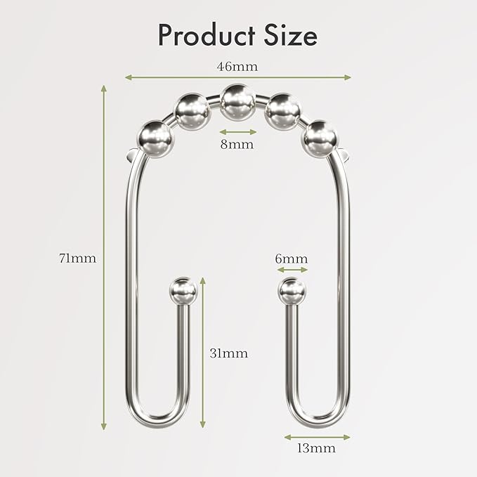 - Smooth gliding: Equipped with five rolling balls each, these shower curtain double hooks reduce friction and smoothly glide along the curtain rod, eliminating the risk of scratches or snags. Experience effortless opening and closing