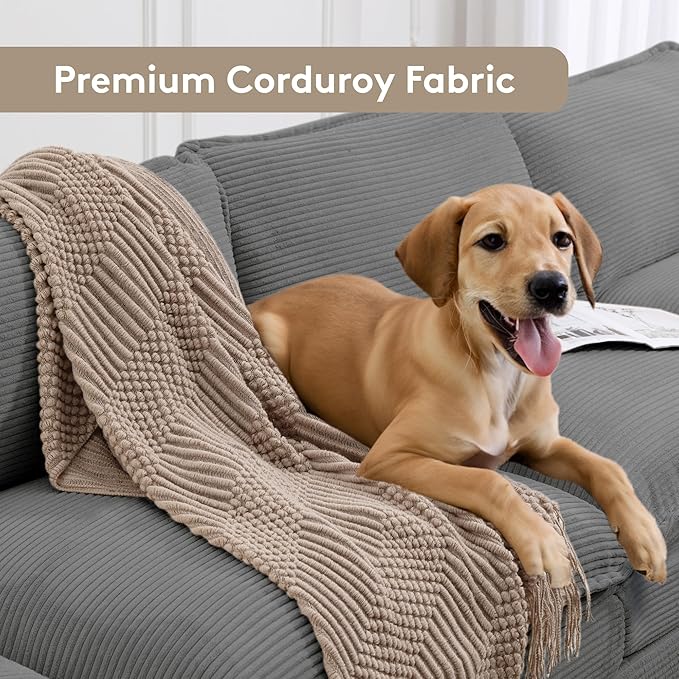 - Premium Corduroy Fabric: The corduroy fabric used to make this sofa has a simple striped design that will enhance your taste. This cozy and warm touch ensures that this sofa will last for a long time. This is an even better choice if you have pets at home, you can allow your pets stay on it. Even if your sofa gets dirty, all you need is a damp cloth to gently wipe it down