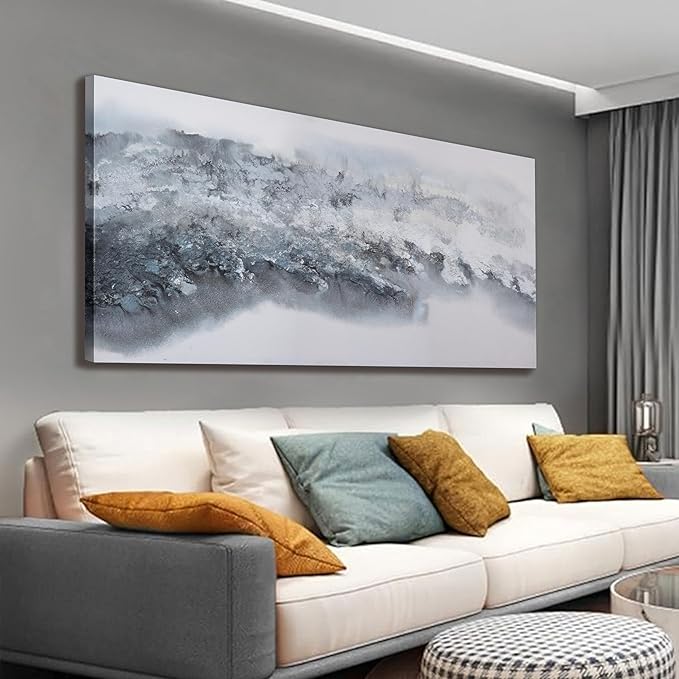 Grey And White Wall Paintings Abstract Wall Decorations Canvas Prints Poster Wall Art 24”x48" Home Decor Grey Artwork Painting Pictures for Living Room Dinning Room