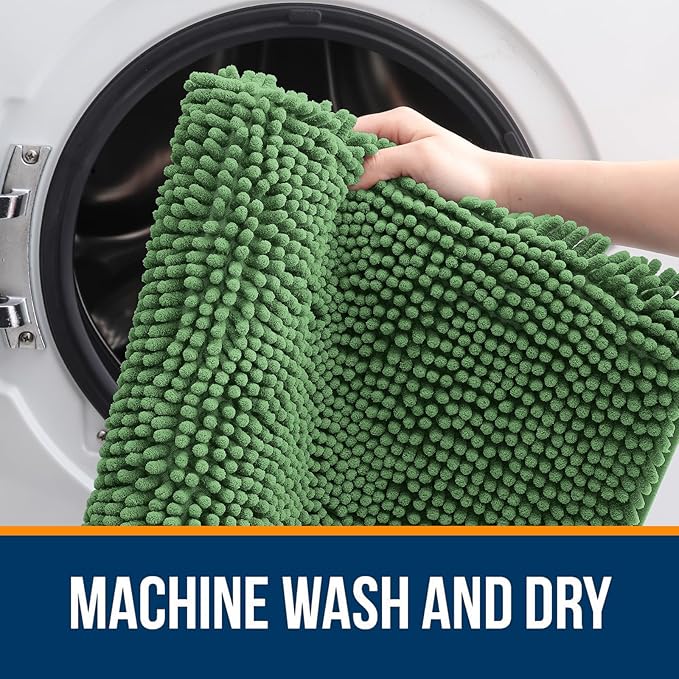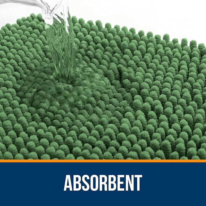 OLANLY Bathroom Rugs 30x20, Extra Soft Absorbent Chenille Bath Rugs, Rubber Backing Quick Dry, Machine Washable Bath Mats for Bathroom Floor, Tub and Shower, Home Decor Accessories, Olive Green