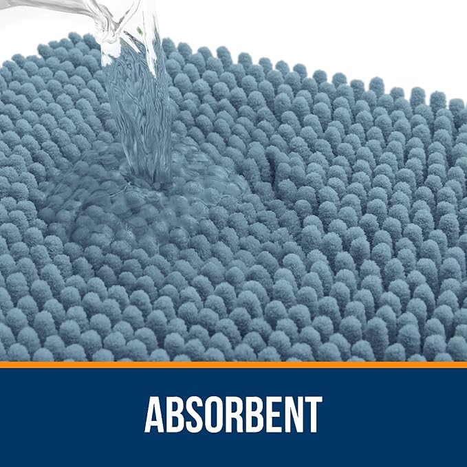 OLANLY Bathroom Rugs 24x16, Extra Soft Absorbent Chenille Bath Rugs, Rubber Backing Quick Dry, Machine Washable Bath Mats for Bathroom Floor, Tub and Shower, Home Decor Accessories, Airy Blue