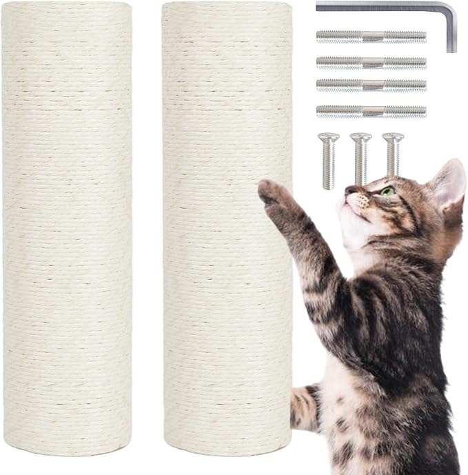 PowerKing Thick Natural Sisal Replacement Scratching Post,15.7" Length, 4.5" Thick, 2Pcs M8 Cat Scratch Post Refill Poles, Ideal for Refurbishment, Includes Screws, White