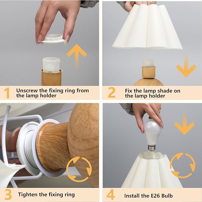 - The modern minimalist egg-shaped lamp base and pleated fabric shade make your room look more unique and impressive. This bedside lamp can also be a lovely decoration for your bedroom or living room.