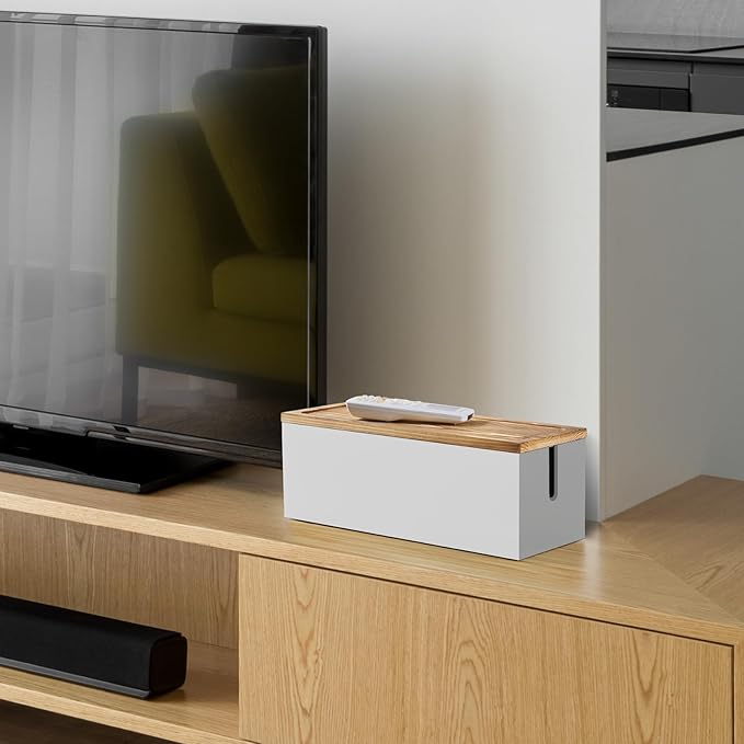 Bivvclaz Large Cable Management Box, Wooden Cord Organizer Box for Desk, Floor, Office to Hide Extension Cords Power Stripes Surge Protectors Chargers Wires, White