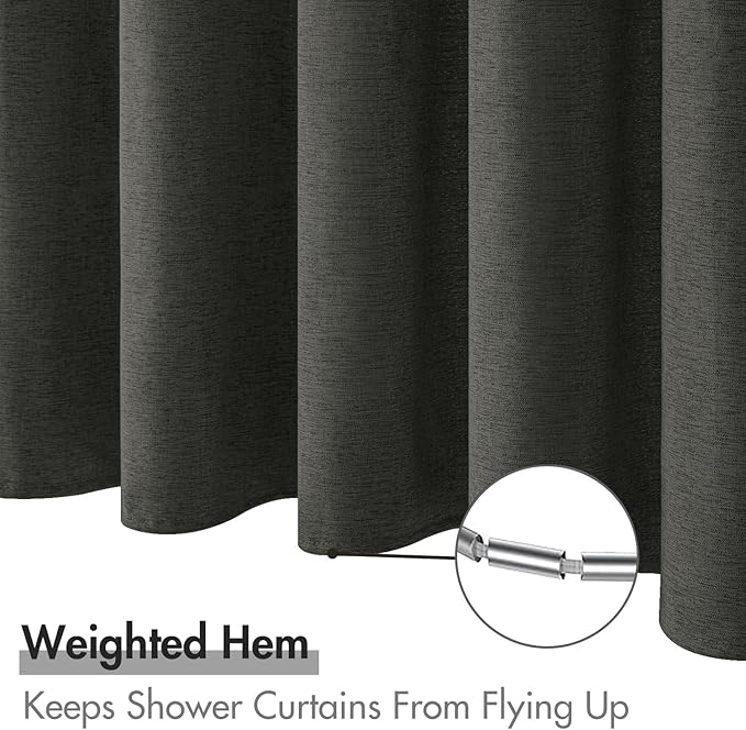 - Package Includes - Comes with 1 faux linen shower curtain featuring reinforced metal holes and 12 bonus metal hooks, rust resistant and easy to slide. You will enjoy the added convenience of these bonus hooks while saving on the cost and effort.