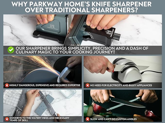 - ๐ช EXCLUSIVELY COMPATIBLE WITH PARKWAY HOME'S ADJUSTABLE KNIFE SHARPENER: These whetstones are specially designed for Parkway Home's Adjustable Rolling Knife Sharpener Kit and will not fit other sharpeners. Maintain the performance of your rolling knife sharpener with the right accessories.