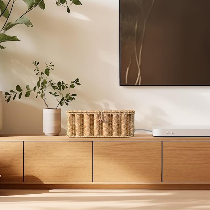 - Safe Material & Ventilation System: Brownlily cord management box ensures a sturdy thickness with safe faux rattan material. The breathable cord holder effectively prevents surge protector power strip from overheating due to its multiple air holes