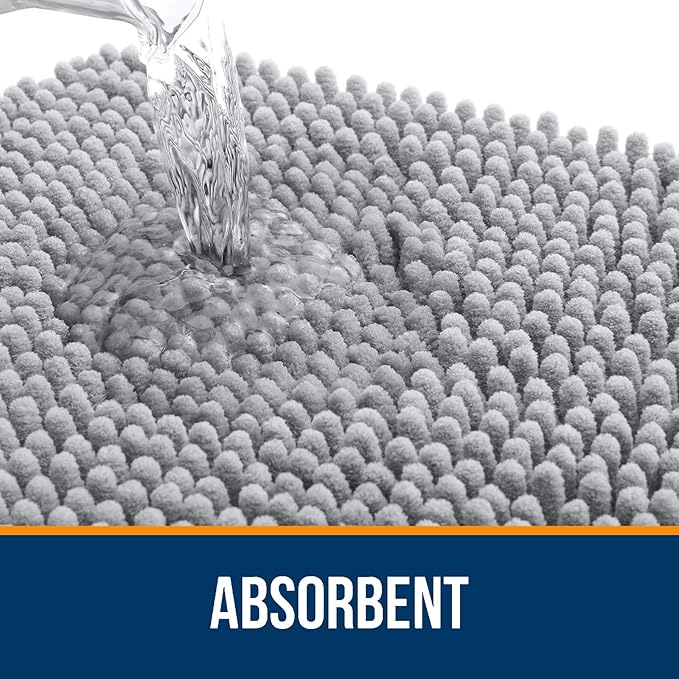 OLANLY Bathroom Rugs 34x21, Extra Soft Absorbent Chenille Bath Rugs, Rubber Backing Quick Dry, Machine Washable Bath Mats for Bathroom Floor, Tub and Shower, Home Decor Accessories, Light Grey