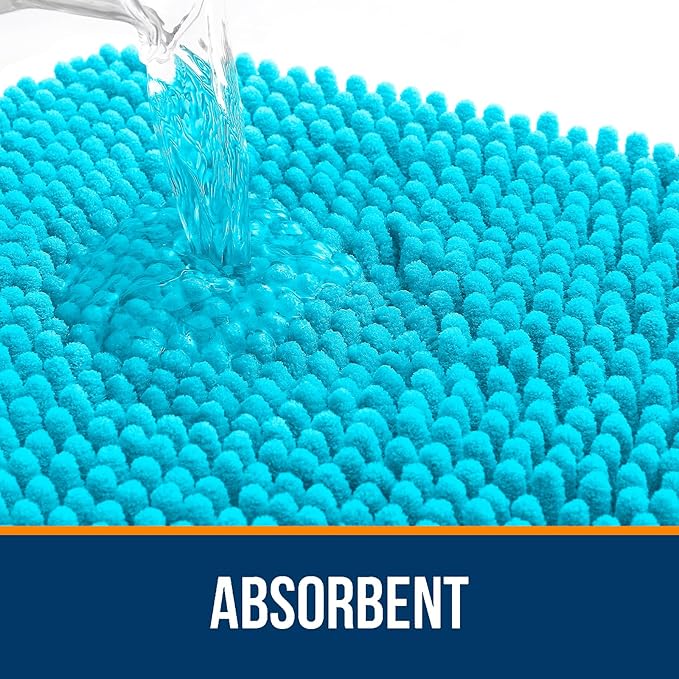 OLANLY Bathroom Rugs 30x20, Extra Soft Absorbent Chenille Bath Rugs, Rubber Backing Quick Dry, Machine Washable Bath Mats for Bathroom Floor, Tub and Shower, Home Decor Accessories, Aqua Sky