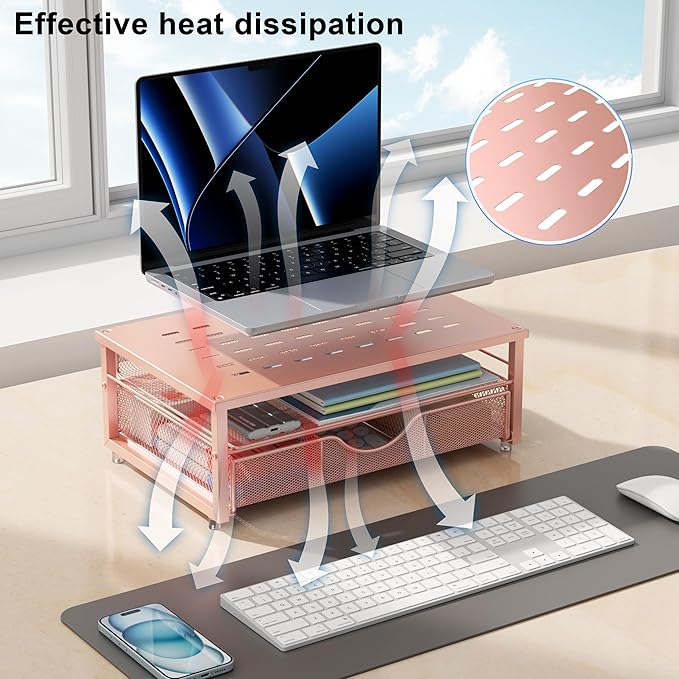 gianotter Computer Monitor Stand Riser, office organizer with Drawer, Office Organizers Storage for Classroom Office Supplies (Rose)