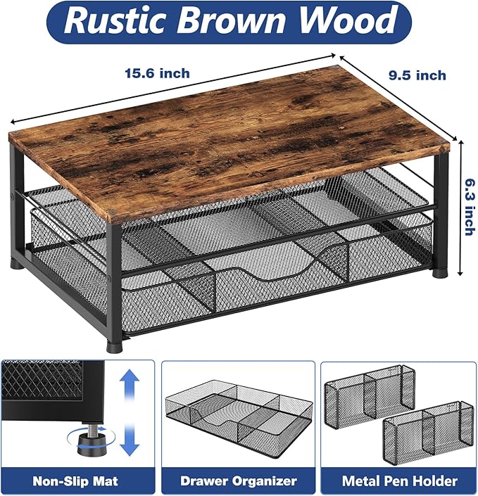 Desk Organizers and Accessories, 2-Tier Computer Monitor Stand Riser with Drawer and 2 Pen Holders, Laptop Stand, Office Desk Accessories for Office Supplies, Brown