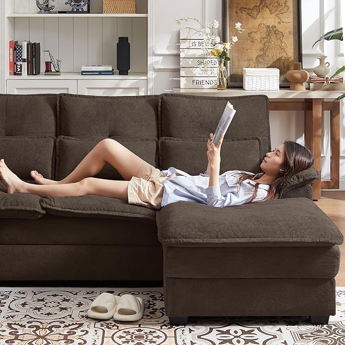 - Cloud-Like Design Sofas : Featuring double-layered, thickened cushions, four-seater modular cloud couch with lumbar pillows offers a cloud-like softness combined with firm support. The spacious U-shaped layout provides ample seating, perfect for gatherings. Whether you're relaxing alone or hosting friends, the sectional cloud couch ensures everyone experiences luxurious comfort and plenty of space to unwind