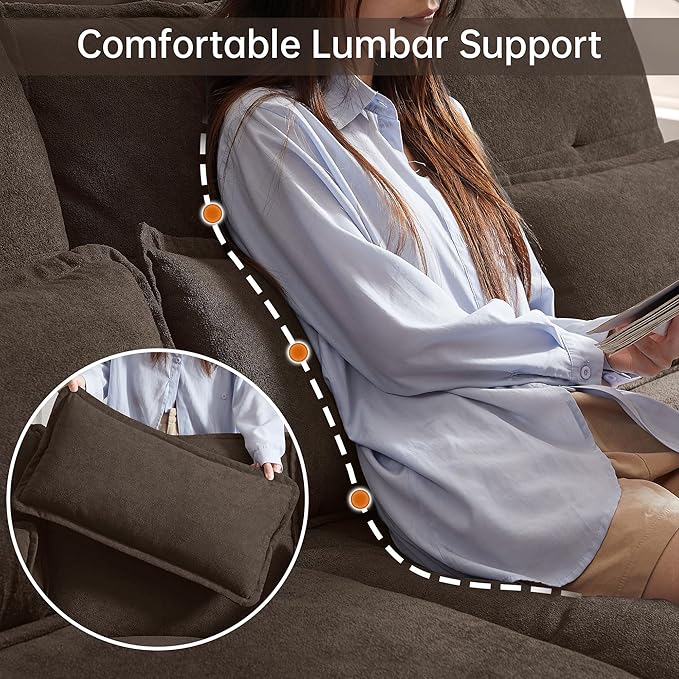 - Excellent Support Sofa : Cloud sofa is designed for ultimate relaxation, featuring soft armrest and lumbar pillows that adapt to your comfort needs. Whether you're taking a quick nap or settling in for a movie night, these lumbar pillows provide excellent support, ensuring a cozy and customized lounging experience. Ideal for your living room, apartment, or lounge