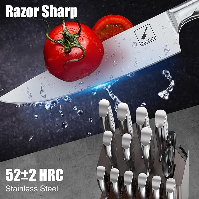 imarku® Knife Set, 15-Pieces HC Stainless Steel Kitchen Knife Set With Built in Knife Sharpener, Razor-Sharp Blade Knife Block Set With Non-Slip Handle, Dishwasher Safe, Best Birthday Gifts