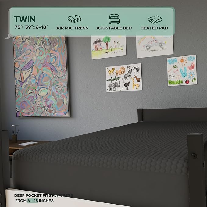 - 【Deep Pocket Design with 360° Elastic Edges】: Fits 6"-20" mattresses (Twin 75" x 39") with elastic edges that hug tightly like a second skin, adapting to any mattress type. Unlike ordinary covers that wrinkle and rustle, our durable bands stay securely in place—blocking crinkling sounds while delivering silent, peaceful comfort throughout the night.