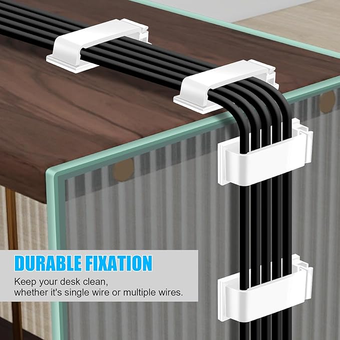 XHF 100 PCS Self Adhesive Cable Clips(L) White,Wire Clips Cable Management Wire Organizer Cord Holder for Under Desk, Car, Wall, TV PC Ethernet Cable