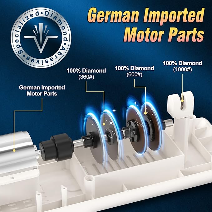 - Open Sharpening Slots: The first and second stages of the sharpening system use 100% diamond abrasive to sharpen and polish the edges; The third stage involves polishing and completing the blade. The open sharpening Slots allows you to have more sharpening angles.