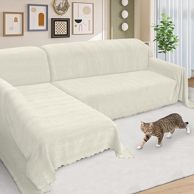 - 10 SECONDS INSTALLATION: This universal l shape sofa covers blanket are much easier to install, taking only 10 seconds to install. Simply drape it over your sofa like an extra large blanket and tuck in any extra fabric for a seamless look. No complicated instructions or tools needed. The ultra soft and modern throw covers for sofa can also be used as a bedspread, carpet, table cloth, couch blanket, bed sheets