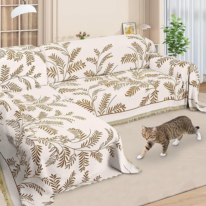 ALIECOM Boho Couch Covers for Sectional Sofa 2 Piece Thick Chenille L Shape Sofa Cover Washable Reversible Couch Cover Blanket Sofa Slipcovers Pet Dog Furniture Protector (XX-Large, Leaves Coffee)