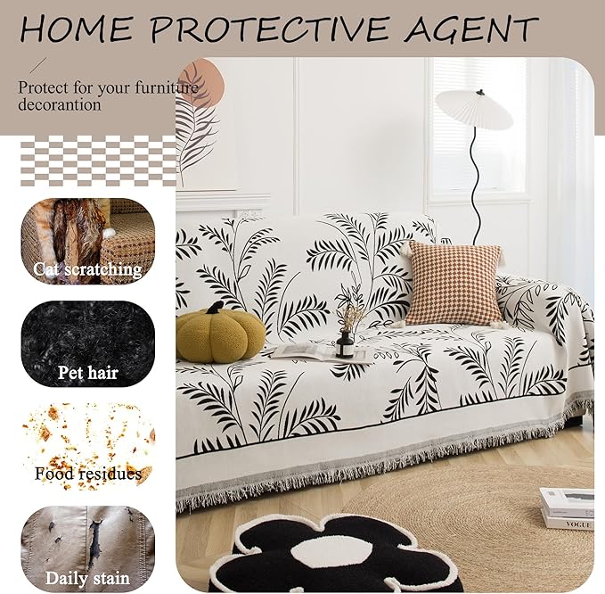 - FURNITURE PROTECTOR: The anti-slip boho couch cover l shape sofa cover will protect your sofa from accidental stains, food residue, pet dog hair, also helps maintain its pristine condition, saving you from the expense of replacing furniture. Available in a variety of colors and patterns, the geometric weaving and tassel details on the edges add a modern and fashionable flair to your home decoration. Protect your furniture in style with our chic and practical sectional sofa cover