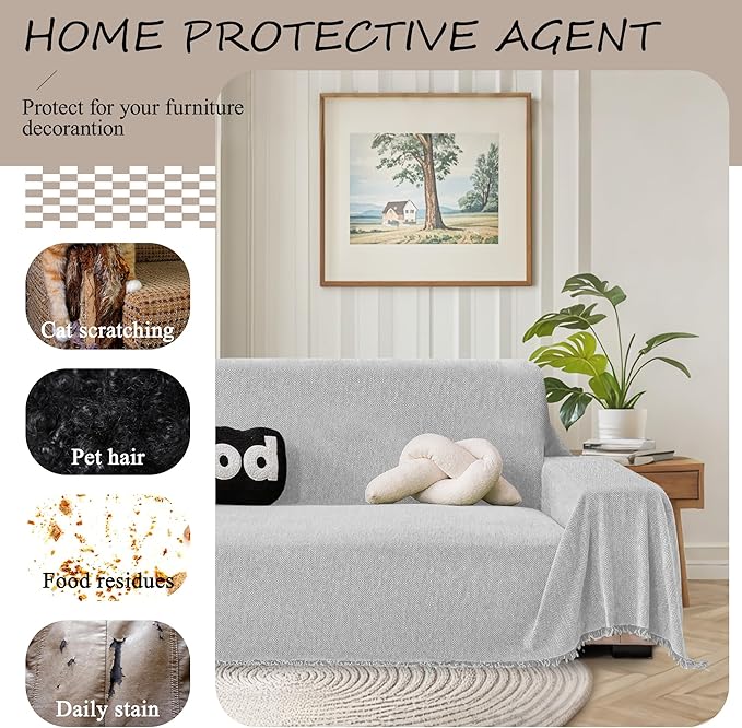 - 10 SECONDS INSTALLATION: This universal l shape sofa covers blanket are much easier to install, taking only 10 seconds to install. Simply drape it over your sofa like an extra large blanket and tuck in any extra fabric for a seamless look. No complicated instructions or tools needed. The ultra soft and modern throw covers for sofa can also be used as a bedspread, carpet, table cloth, couch blanket, bed sheets