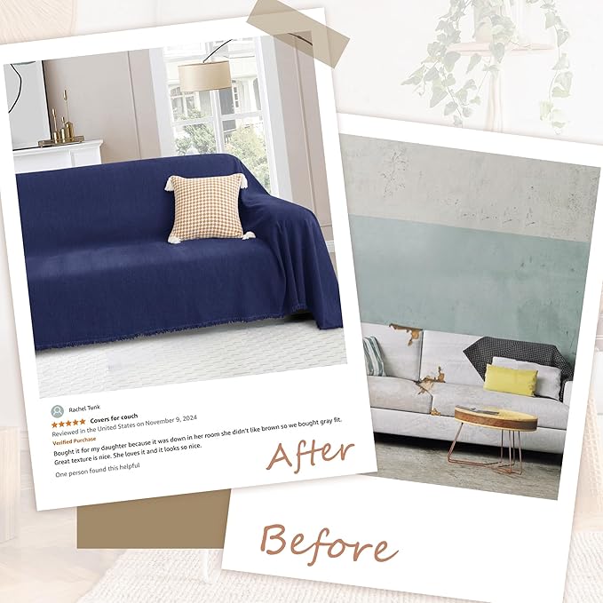 - 10 SECONDS INSTALLATION: This universal l shape sofa covers blanket are much easier to install, taking only 10 seconds to install. Simply drape it over your sofa like an extra large blanket and tuck in any extra fabric for a seamless look. No complicated instructions or tools needed. The ultra soft and modern throw covers for sofa can also be used as a bedspread, carpet, table cloth, couch blanket, bed sheets
