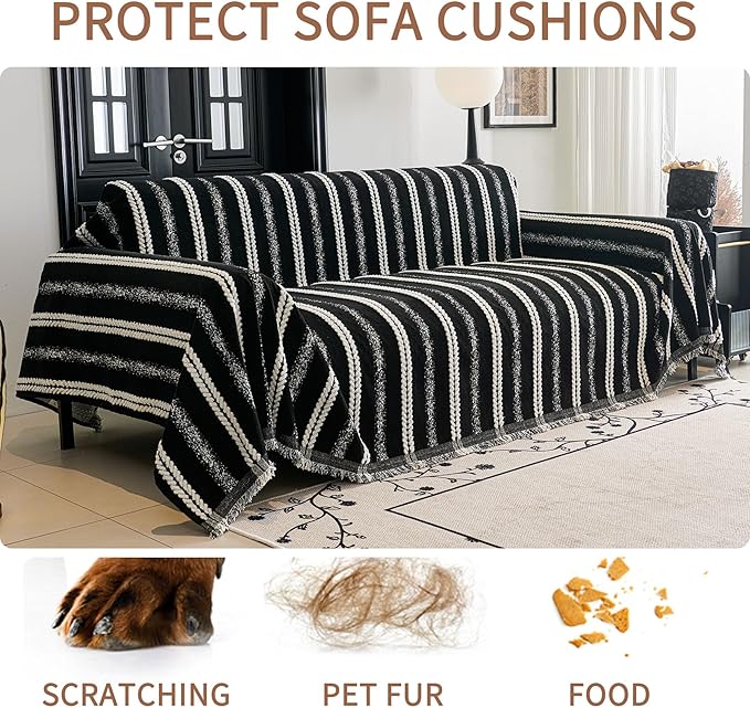 - UNIQUE ANTI-SLIP: Unlike other ordinary couch cover Blanket, our non-slip sofa cover has added anti-slip particles on the reverse side, which can ensure that oversized couch cover won't slide, even when someone sits on the sofa, it won't move around or generate displacement, when sofa protector is finished laying, you don't need to adjust couch protector frequently, it's a very labor-saving.