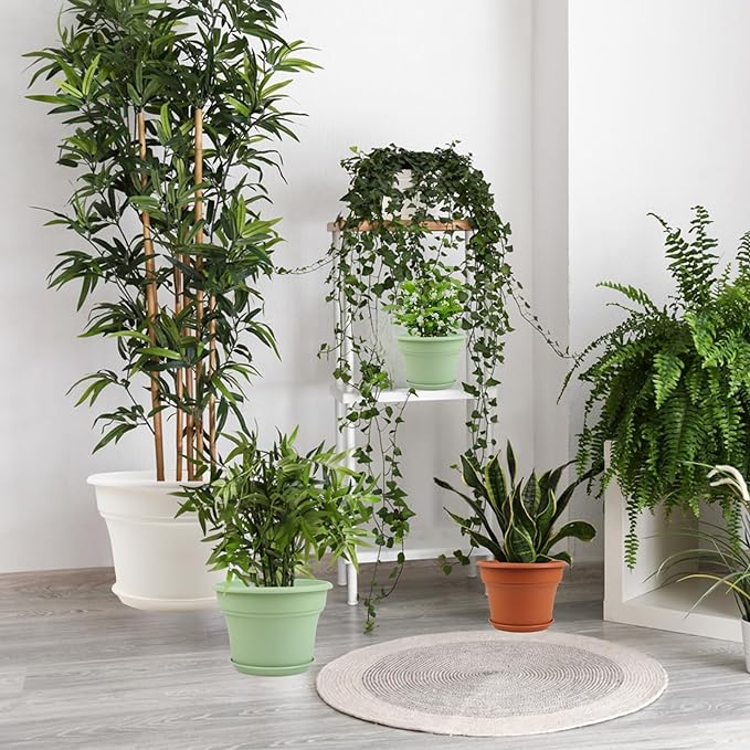- 【Multiple Sizes to Meet Various Planting Needs】Pot for plants indoor outdoor are available in size 8-9-10-11-13-16 inch. Plastic flower pots are perfect for planting a wide range of small to medium-sized plants commonly found in homes and offices. Whether it’s orchids, succulents, herbs, snake plants, mints, cacti, aloes, peace lilies, or more, these garden pots with drainage and saucer are designed to accommodate them all.