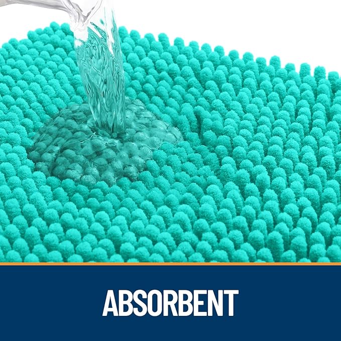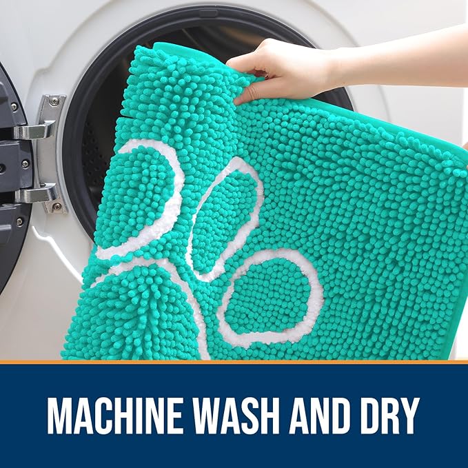 OLANLY Dog Door Mat for Muddy Paws 48x30, Paw Print Design, Absorbs Moisture and Dirt, Absorbent Non-Slip Washable Doormat, Quick Dry Chenille Mud Mat for Dogs, Entry Indoor Entryway Carpet, Teal