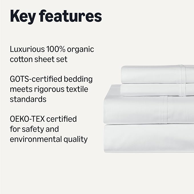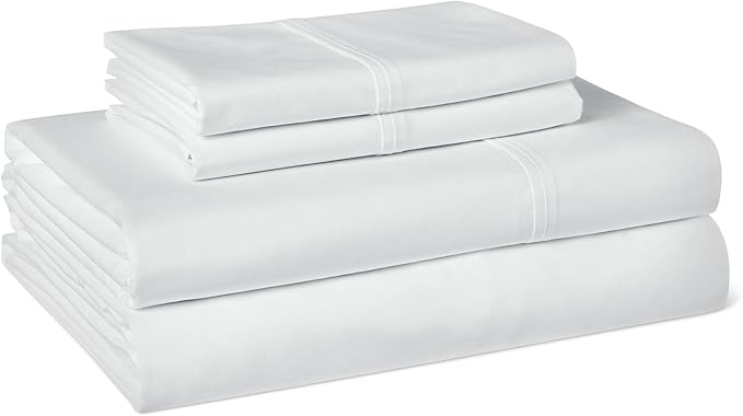 Amazon Basics Soft Organic Cotton Sheet Set with 2-Pieces Pillowcase, White, King