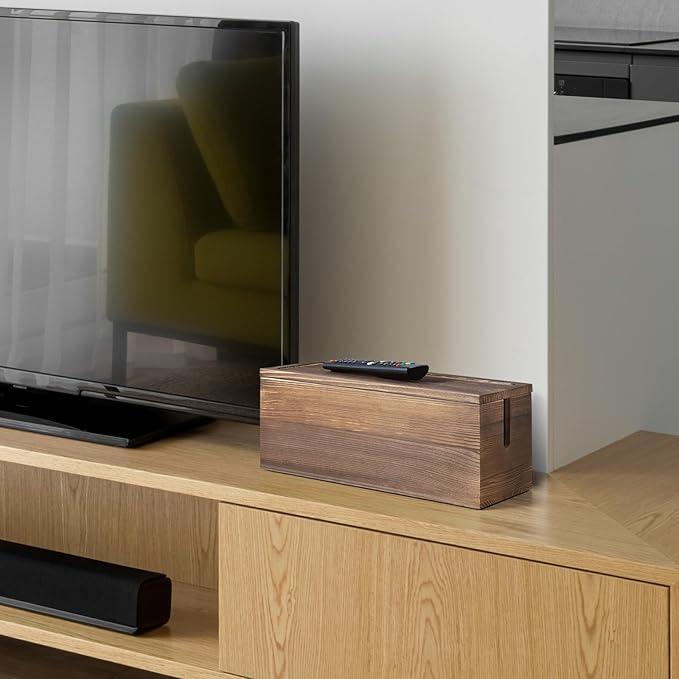 - Natural Wood Material: Our wire box organizer cord box hider is crafted from long-lasting burnt wood, ensuring that it can withstand daily use for years to come. The smooth surface of the wood makes it easy to clean and maintain with just a quick wipe-down using a damp cloth.