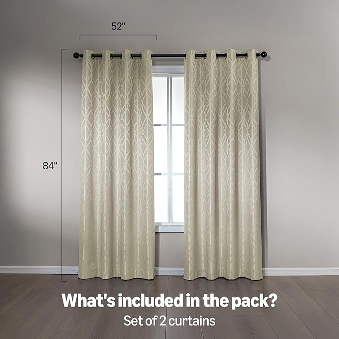 Amazon Basics Jacquard 2-Piece 100% Blackout Curtains, Living Room and Bedroom Drapes, Thermal Insulated Window Treatment, 52"x84", Beige